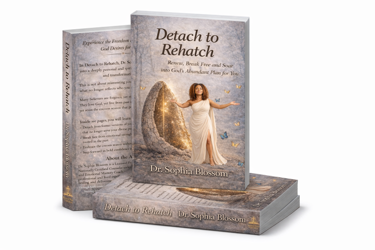 Detach to Rehatch: Renew, Break Free, and Soar Into God’s Abundant Plan is a powerful guide to spiritual transformation, personal reflection, and renewed alignment with God’s divine purpose. Through honest testimony, biblical teaching, and practical reflection exercises, Dr. Sophia Blossom walks readers through the process of identifying the patterns, attachments, and limiting beliefs that keep them spiritually and emotionally stuck.